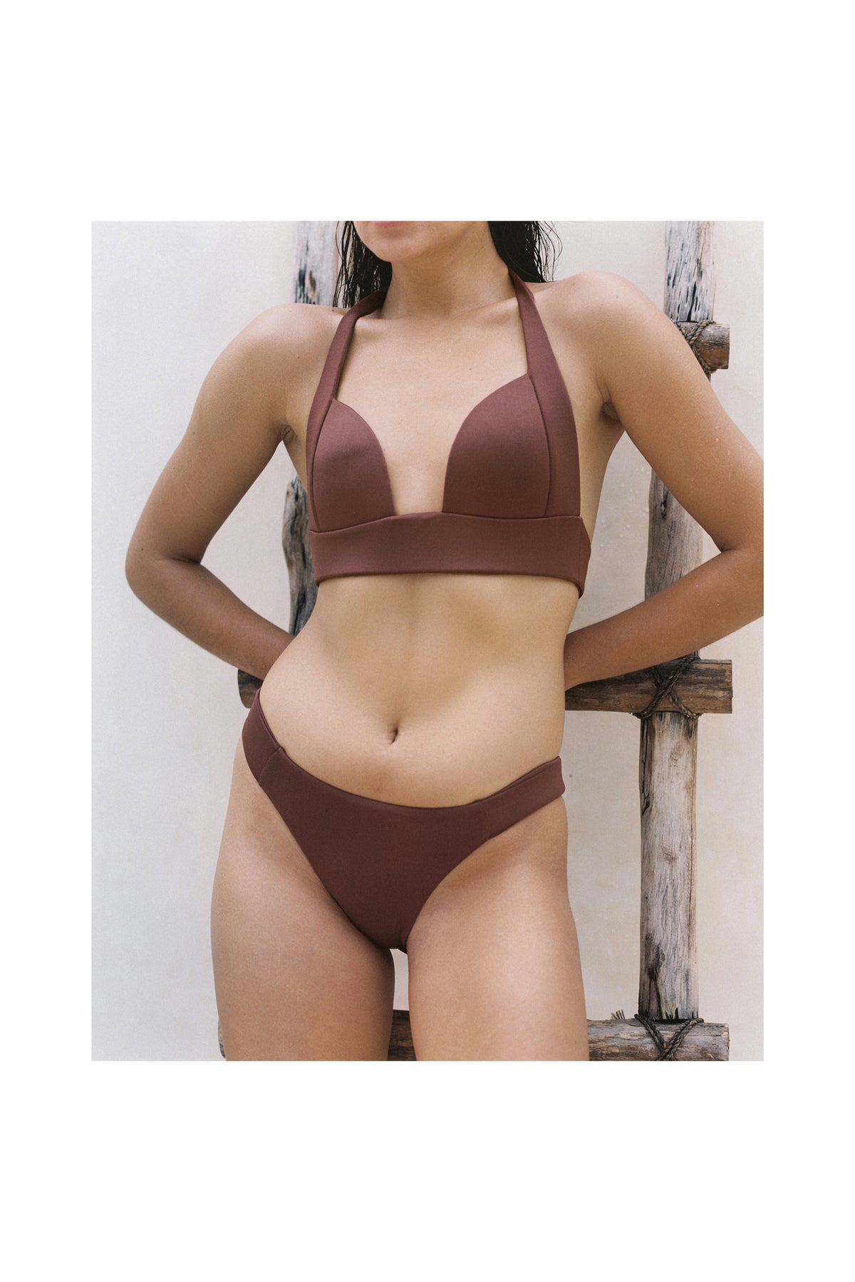 Hugging your hips with our ‘Crush’ sidebands, these bottoms are designed with hidden linings to prevent them from wrinkling, creasing, or displacing when worn. Made from our soft and stretchy eco-fabric, these bottoms fit gently to the body to give your figure a smooth contour. Shaped with our 'Fairly Covering' back coverage and colored in our medium rose 'Taupe' colorway.