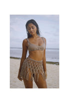 Completely hand-sewn, this layering skirt shows off masterful macramé handiwork, decorated by its floral motif and hanging fringes. Incredibly soft to the touch, the Ephemeral skirt is completely hand-sewn, made with our velvety, vegan faux-suede fabric.