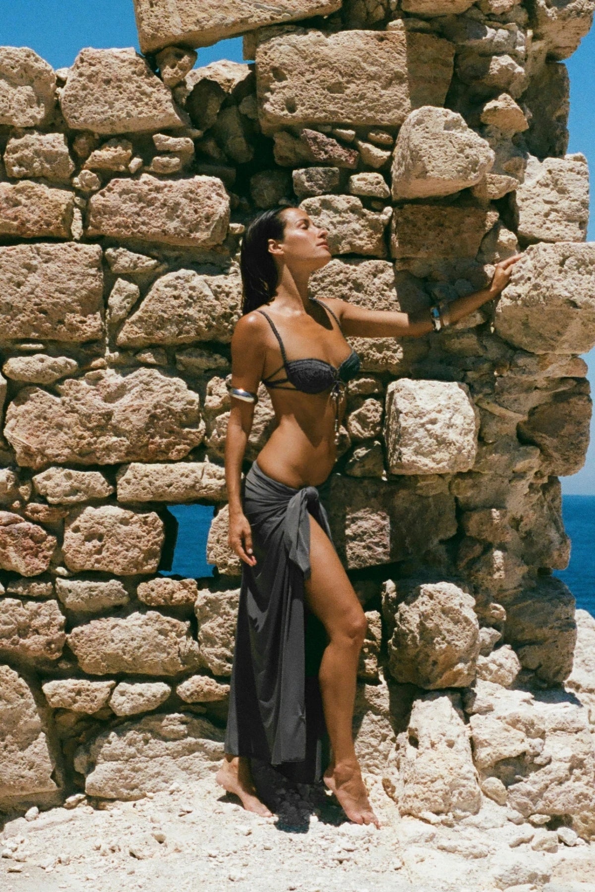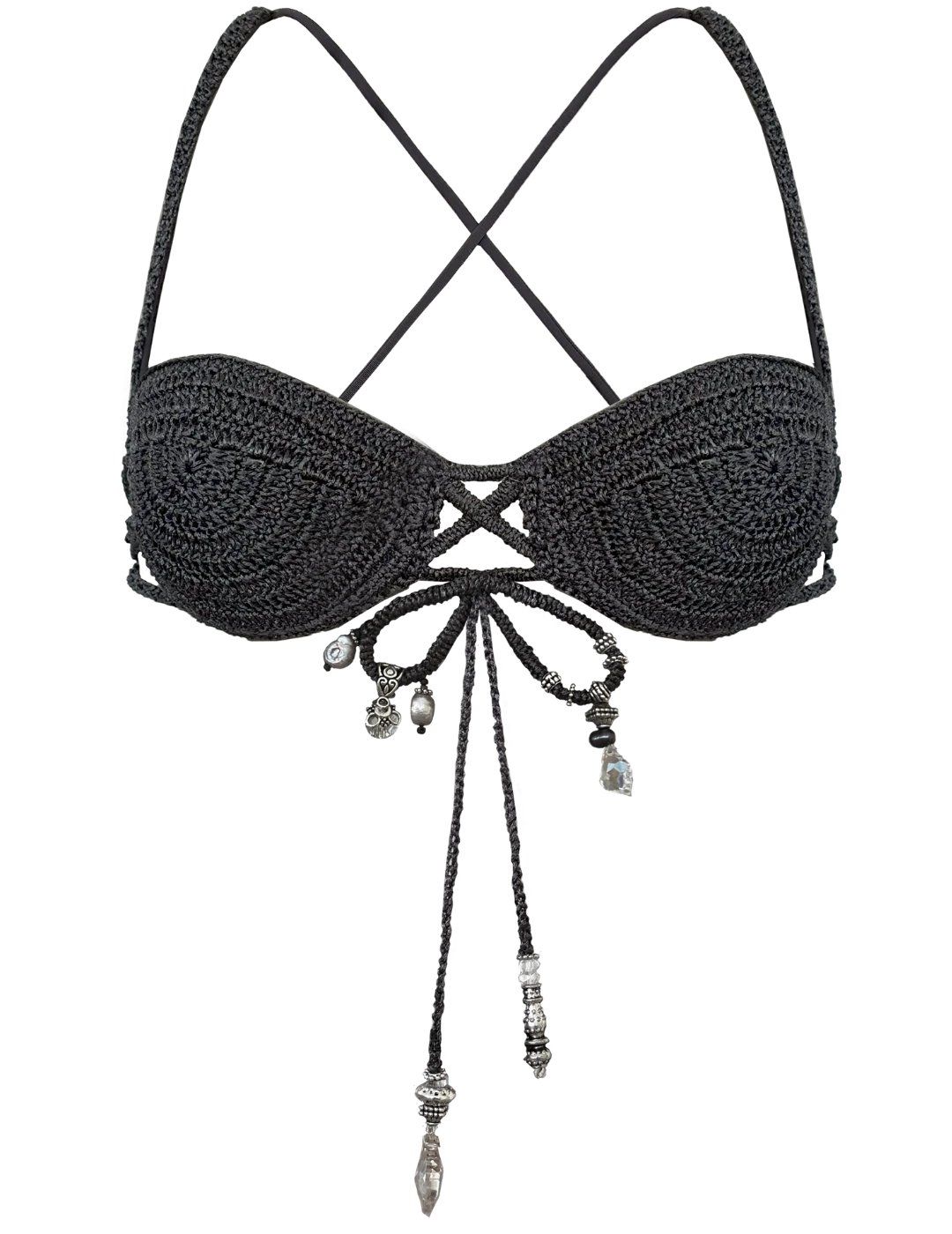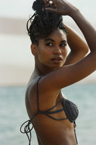 The Dust & Diamonds Top blends a thoughtful design and handmade quality, which makes it more than just your typical bikini top. Comes in a deep graphite shade, each piece brings textured, and artisanal feel.