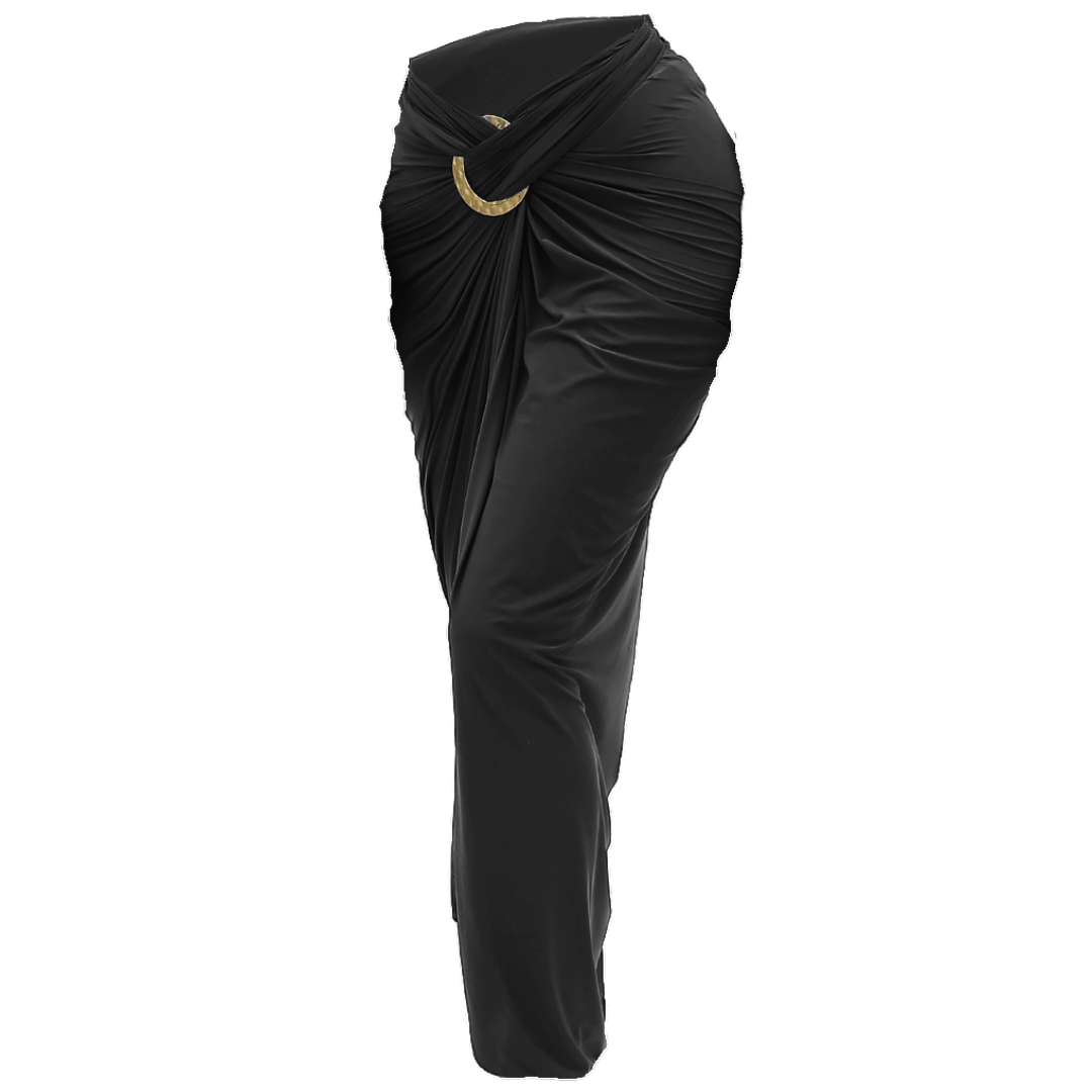 Embellish with a chic pareo ring and get creative with this skirt's curved silhouette.