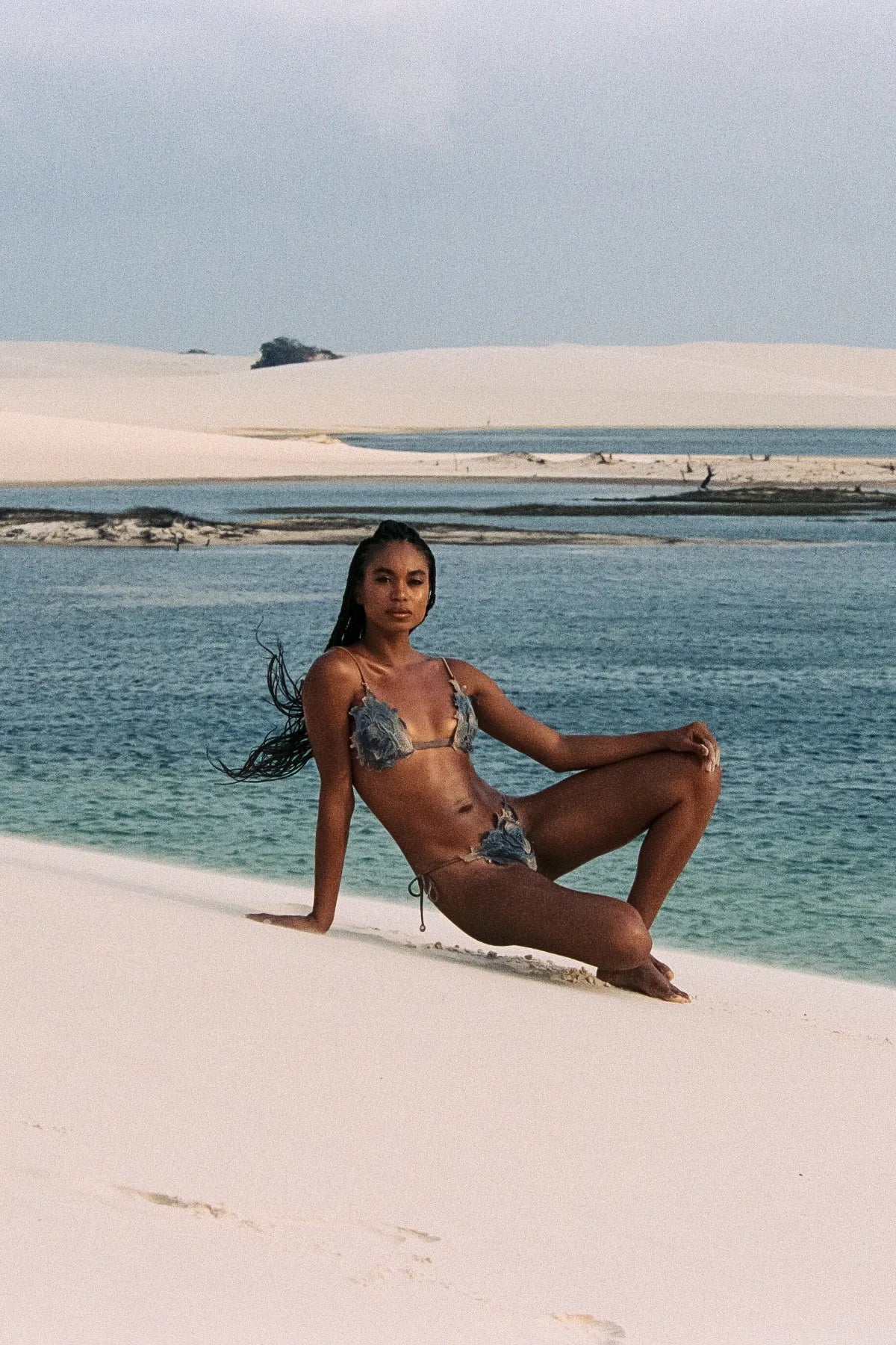 - Bralette bikini overlaid with a floral motif design