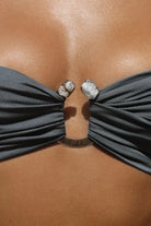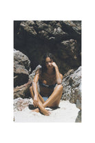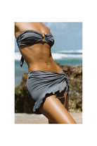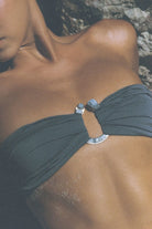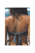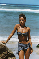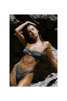 Sheathed with our 'Invisible Lift' and ruched to give your bust a fuller effect, this top is double-layered; created with our soft and stretchy eco-fabric colored in 'Shadow' blue. Securing to the body with bendy side-bones to prevent displacement plus self-tie ribbon straps as well as adjustable and removable neck straps, this bikini can be be styled as a halterneck or bandeau.
